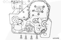安裝固定油底殼與齒輪室殼體的 4 個(gè)螺栓。扭矩值: 47 n.m [35 ft-lb]