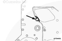 在齒輪室殼體后部的凹槽中涂抹一圈密封膠(零件號 3823494)。完全注滿(mǎn)凹槽,使密封膠高于齒輪室殼體的缸體安裝表面大約 1/16 到 1/8 英寸。