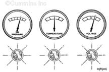 康明斯發(fā)動(dòng)機運轉時(shí),冷卻液溫度表顯示發(fā)動(dòng)機冷卻液的溫度。最后一個(gè)開(kāi)口可能被堵上,或者用作船只制造商需要的其它儀表。