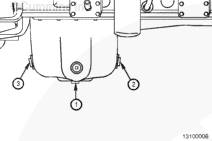 如果換油吸油裝置固定在油底殼的起動(dòng)馬達側的側面排油出口 (2) 上,則必須將其移動(dòng)到另一側的排油口 (3)。