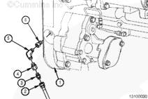康明斯N14 壓力管安裝,主要位置,從齒輪殼機油壓力端口拆下壓力端口螺塞。