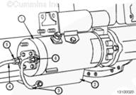 用清潔的康明斯發(fā)動(dòng)機機油加注到吸油管中 (3)。將吸油管安裝到油底殼 (2) 與 PRELUB™ 起動(dòng)馬達 (1) 上的輸入端口 (6) 之間。將 PRELUB™ 軟管 (4) 安裝到機油濾清器座與 PRELUB™ 起動(dòng)馬達 (1) 上的壓力端口 (5) 之間。