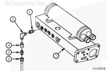 使用康明斯機油輸送接頭的前端安裝單向閥和壓力軟管。