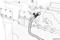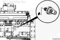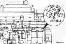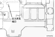 將康明斯壓力開(kāi)關(guān) 安裝在機油濾清器后面,左排上的主油道中,如圖所示。