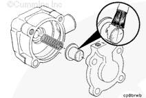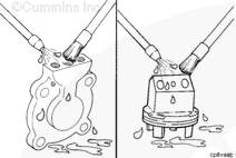 康明斯水泵漏水孔 (1) 處有少量化學(xué)堆積物或出現條紋屬正?,F象。不要維修或更換水泵,除非確認確實(shí)泄漏。有關(guān)更換問(wèn)題,請與Cummins® 特約維修站聯(lián)系。