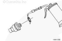 將新康明斯傳感器裝入發(fā)動(dòng)機缸體中。使用加長(cháng)套筒(零件號 3823843)擰緊傳感器。扭矩值: 14 n.m [124 in-lb]