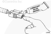 僅使用康明斯推薦的零件號為 3822934 的 DS-ES 潤滑劑。接頭內粘有機油或潤滑脂等其它潤滑劑將會(huì )導致 ECM 損壞、發(fā)動(dòng)機性能下降或接頭觸針過(guò)早磨損。