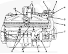 1渦輪增壓器,2 LTA出水管接頭,3發(fā)動(dòng)機出水管接頭,4節溫器殼體,5中冷器排氣管,6旁通水管,7水泵,8水泵排放,9冷卻液進(jìn)口接頭,10機油濾清器,11中冷器總成,12機油加注口和機油標尺管(位置可能會(huì )變化),13進(jìn)氣歧管蓋。