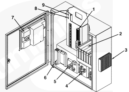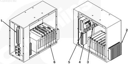 1 TB3,2燃油系統電路板散熱器,3 PT/CT電路板,4電壓調節器輸出模塊,5總線(xiàn)PT模塊,6插件箱。