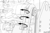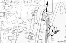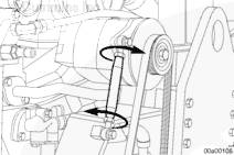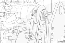 轉動(dòng)調節桿以解除皮帶張力。拆下充電機皮帶。參考步驟 013-005。