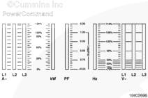 數字 VAC 測量?jì)x表板可同時(shí)顯示三相線(xiàn)間交流電壓、電流、功率 (kW)、功率因數和頻率。該面板是由一系列帶有色標的發(fā)光二極管(LED)組成,其中綠色表示正常范圍值,黃色表示警告,紅色表示停機狀態(tài)。