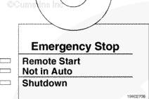 遠程起動(dòng)或停機按鈕用于從遠程位置的發(fā)電機組起動(dòng)和停機。當發(fā)電機組工作時(shí),此按鈕顯示為停機 (STOP);當發(fā)電機組沒(méi)有工作時(shí),此按鈕顯示為起動(dòng) (START)。