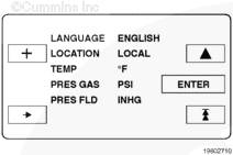 在任何時(shí)候,只要同時(shí)按下顯示窗口底部?jì)蓚鹊?個(gè)按鈕(一邊一個(gè)),就可以改變所顯示的語(yǔ)言和計量單位。會(huì )彈出語(yǔ)言/計量單位子菜單。要將所做更改保存在一個(gè)字段中,按下 ENTER(輸入)按鈕。