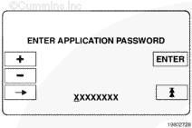 按下正號(+)和負號(-)按鈕選擇密碼的第一個(gè)字符。輸入應用程序密碼設置子菜單,或輸入用戶(hù)密碼調整子菜單。