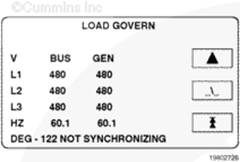 當控制系統使發(fā)電機組達到額定轉速和電壓并且已經(jīng)感應到母線(xiàn)電壓可用時(shí),啟用控制系統的同步功能??刂葡到y自動(dòng)調整發(fā)電機組轉速和電壓,以匹配母線(xiàn)頻率和電壓。