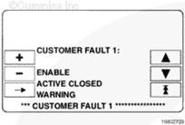 +/- 按鈕將允許您在關(guān)閉/打開(kāi)、啟用/停用和停機/警告之間進(jìn)行切換。您也可以使用此按鈕選擇適當的字符,從而更改故障信息“客戶(hù)故障編號”。