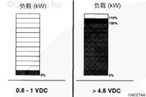 當負載調速信號在 1 VDC 和 4.5 VDC 之間,控制系統將按照 kW 基準和負載調速信號之間的線(xiàn)性關(guān)系確定的負載水平運轉發(fā)電機組。