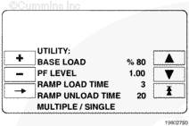 基本負載 (%) 控制發(fā)電機組與公用電網(wǎng)(干線(xiàn))并聯(lián)運轉時(shí)的最大 kW 負載水平。顯示的數值表明發(fā)電機穩態(tài)負載在發(fā)電機組備載規格中所占的百分比。在超出發(fā)電機組規格的負載水平下長(cháng)期運行可能會(huì )造成發(fā)動(dòng)機異常磨損或過(guò)早損壞。