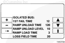 減速卸載水平:負載要求減速卸載功能將使負載在斷開(kāi)電路斷路器前從發(fā)電機組現在的水平逐漸降低至此水平。顯示的數值是發(fā)電機組備載功率的百分比。