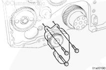 如果從軸上拆下主泵驅動(dòng)齒輪,支撐驅動(dòng)齒輪,使用手扳壓機將軸推過(guò)齒輪至規定位置。