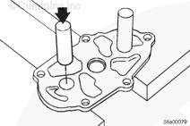 注: 將兩個(gè)機油泵從動(dòng)齒輪軸壓入蓋中。
