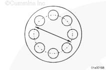 QST30 發(fā)動(dòng)機曲軸前端的螺栓孔采用滾絲螺栓。清潔滾絲螺紋時(shí),請用溶劑沖洗。用壓縮空氣吹干螺紋。如果還需要附加清潔,用尼龍毛刷進(jìn)行洗刷。