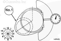 4. 時(shí)鐘位置:時(shí)鐘位置是指軸頸最高千分表總讀數的位置。即從曲軸前端觀(guān)察時(shí),比較其與 1 號曲軸銷(xiāo)的角度關(guān)系。在示例中,曲軸銷(xiāo)處在 8 點(diǎn)鐘位置。這就是被測軸頸的時(shí)鐘位置。
