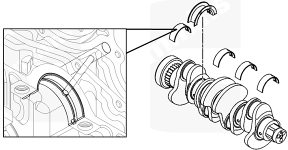 • 除第四號主軸頸外,其余每個(gè)主軸頸上的上主軸承都相同。