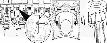• 活塞銷(xiāo)和軸頸的潤滑由來(lái)自噴嘴的機油飛濺潤滑。