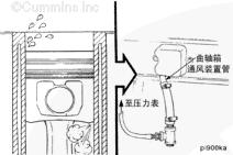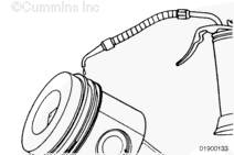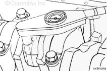 用發(fā)動(dòng)機盤(pán)車(chē)工具(零件號 3824591)旋轉曲軸,直到活塞位積碳下方(可在活塞環(huán)行程區域的上方找到)。