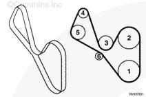 為了確保安裝過(guò)程中冷卻風(fēng)扇驅動(dòng)皮帶布置正確,按照圖示拆卸皮帶之前畫(huà)一幅冷卻風(fēng)扇皮帶布置圖。