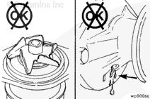 如果以下系統之間存在泄漏,冷卻系統和潤滑系統的工作壓力將使機油和冷卻液混合: 缸蓋密封墊、機油冷卻器等(參考第 7 節中的步驟 007-037。