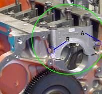 主軸承蓋裝反時(shí),A處與B處干涉,無(wú)法裝配,安裝主軸承蓋要注意編號。