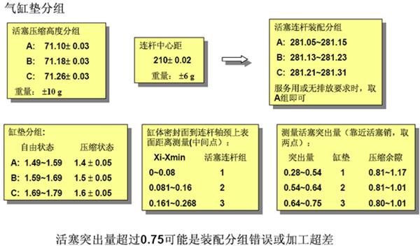 活塞按壓縮高度分組。識別標記打在活塞的頂部以及銘牌上,當更換活塞時(shí),一定要使用相同壓縮高度的活塞。