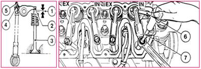 調整氣門(mén)間隙之前,停機30分鐘,油溫要低于80℃。用塞尺6檢查2、3之間的間隙1,塞尺塞入后要有輕度                                           磨擦,正確的氣門(mén)間隙;進(jìn)氣門(mén):0.3mm,排氣門(mén):0.5mm,(每次更換氣缸墊后,氣門(mén)間隙增加0.1mm,運轉                                      50-150小時(shí)后重新調整)。按如下步驟調整氣門(mén)間隙: -松開(kāi)鎖母4。用改錐7擰螺栓5,上緊鎖母4,得到正確的氣門(mén)間隙。                                       檢查、調查其他各缸的氣門(mén)間隙。裝好氣門(mén)室蓋(如需要,更換墊圈)。