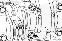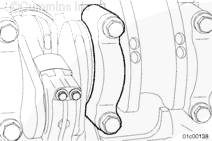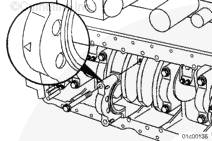 主軸承蓋上標記有“V”字樣。使“V”標記指向發(fā)動(dòng)機的前面。定位不正確會(huì )導致發(fā)動(dòng)機嚴重損壞。