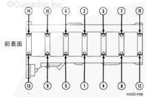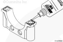 如圖所示,在每個(gè)康明斯ISX15 CM2250發(fā)動(dòng)機主軸承蓋上的 2 個(gè)主軸承蓋表面涂上一層 U 形 Loctite™ 518 螺紋密封膠。