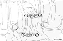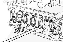 將康明斯ISX15 CM2250發(fā)動(dòng)機主軸承蓋上的兩個(gè)螺釘擰緊到 203 N•m [150 ft-lb]。