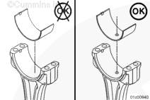 用手將康明斯ISX15 CM2250發(fā)動(dòng)機主軸承軸承裝到上鞍座。使軸承滑動(dòng)入位。安裝軸承時(shí)注意不要損壞曲軸軸頸。