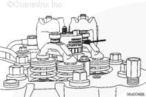將康明斯ISX15 CM2250發(fā)動(dòng)機噴油器和壓緊卡箍以正確的方向放入缸蓋中(燃油進(jìn)口朝向高壓燃油接頭)。