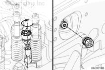 清除搖臂總成安裝螺釘孔中的機油和碎屑。若不遵循此警告說(shuō)明,可能會(huì )導致發(fā)動(dòng)機大范圍損壞。