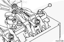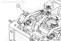 擰緊康明斯ISX15 CM2250發(fā)動(dòng)機搖臂軸螺栓之前,所有氣門(mén)搖臂軸必須座合在缸蓋支座 (1) 上。