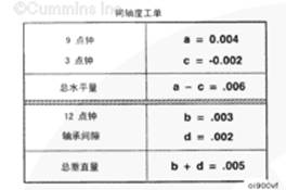 總垂直量等于 12 點(diǎn)鐘位置的讀數 (b) 加上軸承間隙 (d)。