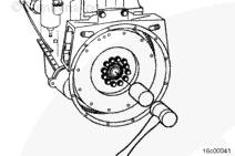 飛輪裝配螺釘應為至少帶滾壓螺紋的SAE 8級螺釘。使用同樣的更換零件,否則可能造成飛輪損壞,并導致人身傷害或財產(chǎn)損失。