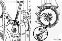 在向前推動(dòng)康明斯ISX15 CM2250發(fā)動(dòng)機曲軸的同時(shí),使用壓縮機驅動(dòng)裝置或盤(pán)車(chē)裝置旋轉曲軸一整圈(360 度)。