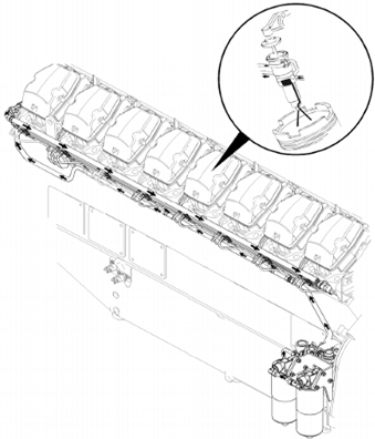 燃油連續不斷地自供油歧管流經(jīng)噴油器。燃油會(huì )在噴油器的供油口或注油口沒(méi)有被噴油器體組件柱塞關(guān)閉時(shí)流過(guò)噴油器。沒(méi)有噴人氣缸的燃油經(jīng)過(guò)回油歧管流回油箱?;赜推绻艿亩瞬堪惭b有個(gè)壓力調節閥。壓力調節閥控制整個(gè)燃油系統的壓力。這樣可確保噴油器正確加注燃油。機械驅動(dòng)噴油器系統提供噴油正時(shí)的總體控制。改變噴油正時(shí)是為了使發(fā)動(dòng)機的性能最佳。轉速傳感器可測量發(fā)動(dòng)機轉速。數字調速器調節至發(fā)動(dòng)機的燃油輸人使實(shí)際發(fā)動(dòng)機轉速與理想發(fā)動(dòng)機轉速匹配。發(fā)動(dòng)機轉速由調速器和轉速傳感器保持。轉速傳感器安裝在飛輪齒輪附近。調速器執行器由數字調速器控制以將需要的負載連接至噴油器連桿。燃油噴射到氣缸內以控制油量。