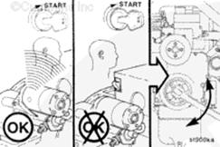 如果在檢查起動(dòng)馬達時(shí)曲軸沒(méi)有轉動(dòng),以康明斯B3.3和QSB3.3發(fā)動(dòng)機的運轉方向盤(pán)動(dòng)曲軸,確??得魉笲3.3和QSB3.3發(fā)動(dòng)機能夠自由轉動(dòng)并且沒(méi)有內部阻力。