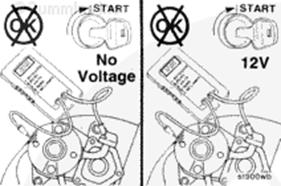 如果康明斯B3.3和QSB3.3發(fā)動(dòng)機能夠自由轉動(dòng),拖動(dòng)期間檢查起動(dòng)馬達的電壓。如果在 12-VDC 電氣系統中,壓降超過(guò) 2.4 VDC ,檢查所有的接頭是否緊固。24-VDC 系統的最大允許電壓是 4.8 VDC。