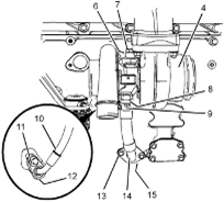 10.將管組件(14)從Perkins1106A/C發(fā)動(dòng)機渦輪增壓器(4)和Perkins1106A/C發(fā)動(dòng)機缸體上拆下。