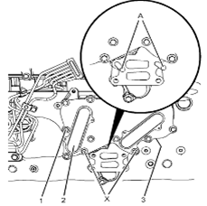 2將新密封墊(3)(未顯示)定位到Perkins1106A/C發(fā)動(dòng)機機油冷卻器組件(2)上。將螺栓(1)安裝到密封墊的鋸齒形孔中。